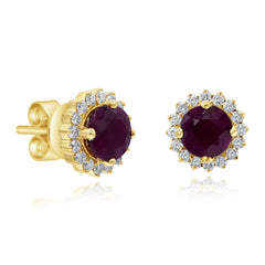 1.08 ct. Ruby & 0.21 ct. Diamond 14K Yellow Gold Halo Stud Earrings