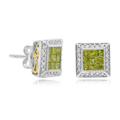 0.98 ct. Yellow & White Diamond 14K White Gold Stud Earrings