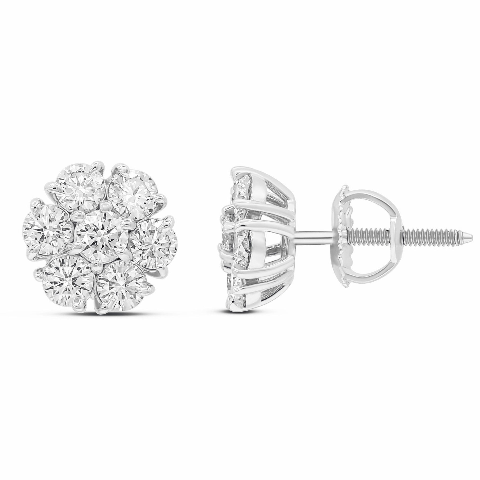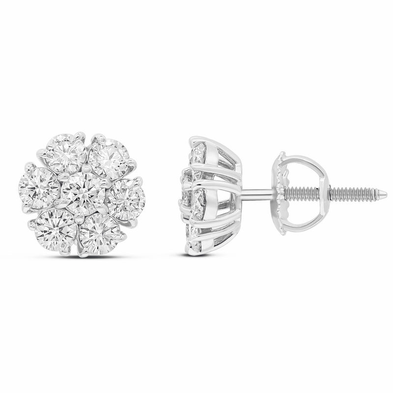 0.84 ct. Diamond 14K White Gold Floret Cluster Stud Earrings