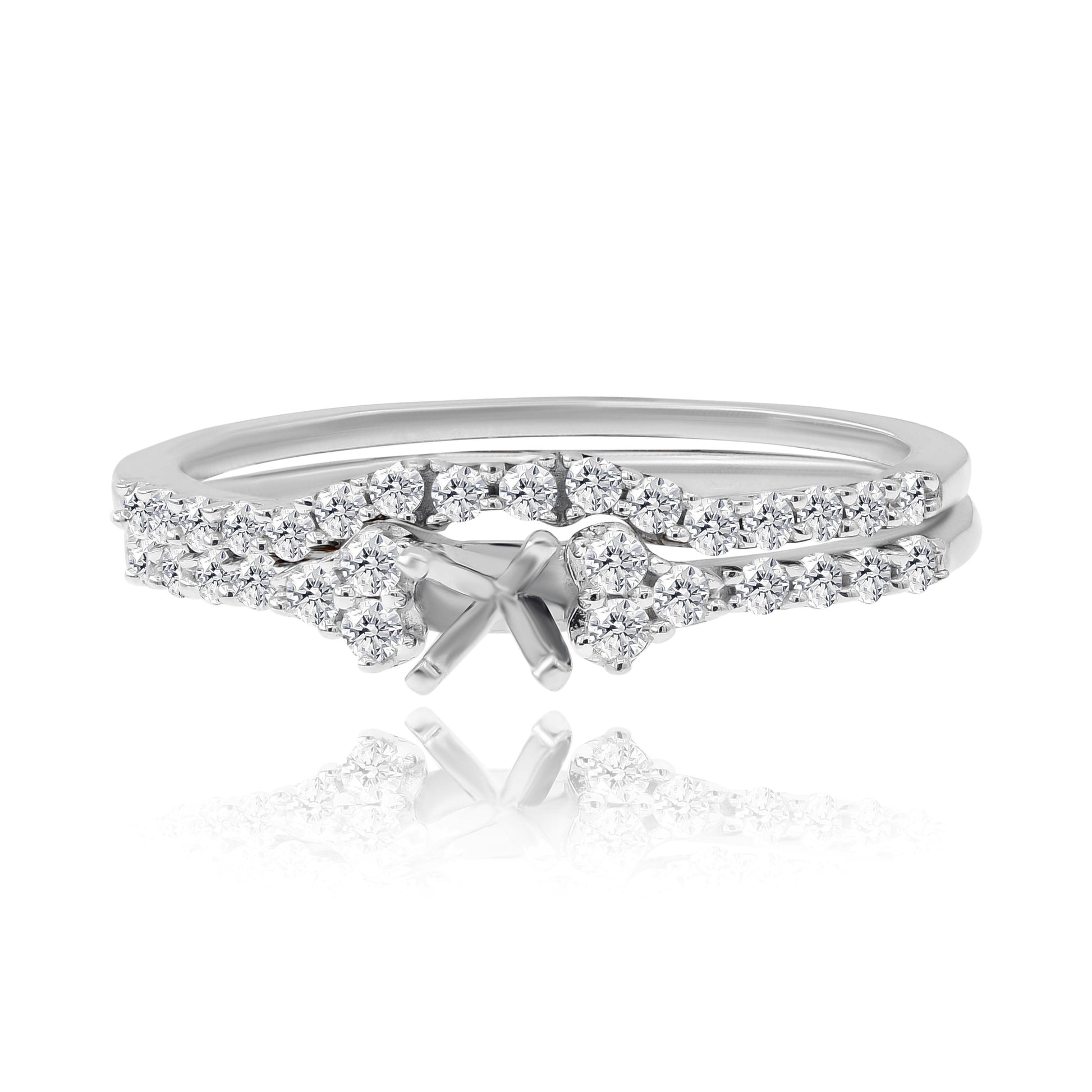 0.35 ct. Diamond 14K White Gold Enagement Ring Mounting With Matching Band