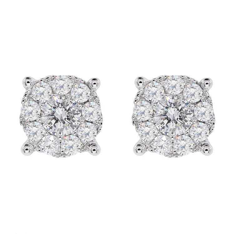 0.97 ct. Diamond 14K White Gold Circle Cluster Stud Earrings