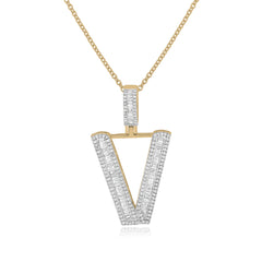 0.56 ct. Diamond 14K Yellow Gold 'V' Initial Pendant