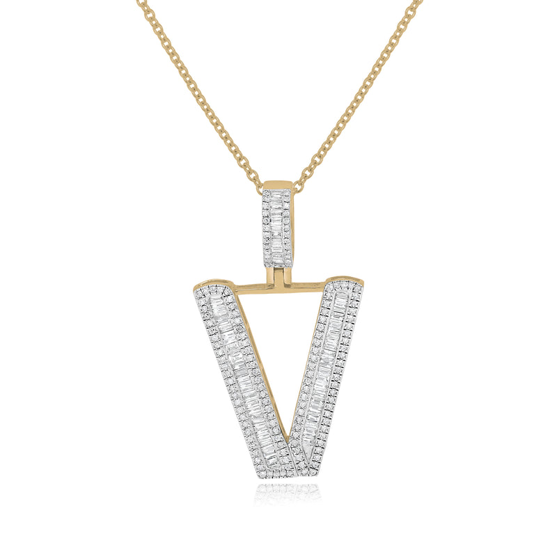 0.65 ct. Diamond 14K Yellow Gold 'V' Initial Pendant