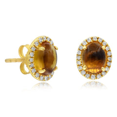 2.05 ct. Citrine & 0.22 ct. Diamond 14K Yellow Gold Halo Stud Earrings