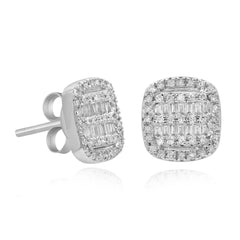 0.31 ct. Diamond 14K White Gold Cushion Baguette Earrings