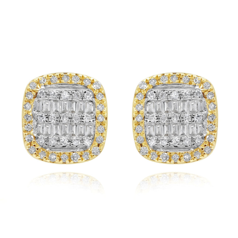 0.31 ct. Diamond 14K Yellow Gold Cushion Baguette Earrings