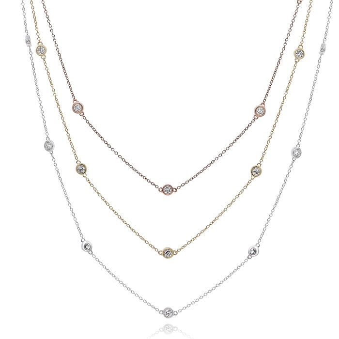 2.1 ct. Diamond 14K Three-Tone Gold 3 Row By The Yard Love Necklace