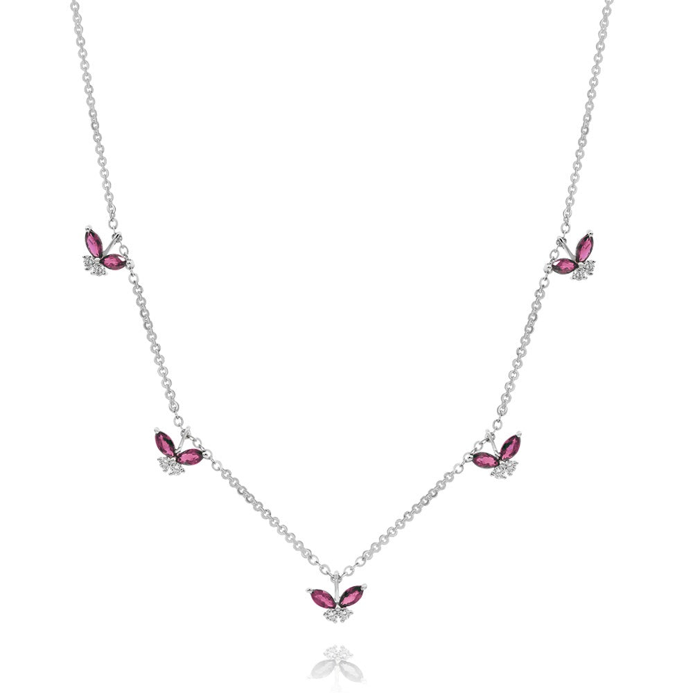 0.86 ct. Ruby & 0.32 ct. Diamond 14K White Gold Butterfly Station Necklace 18"
