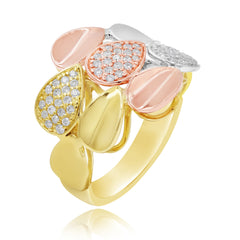 0.39 ct. Diamond 14K Three-Tone Gold Pave Pear Teardrop Cocktail Ring