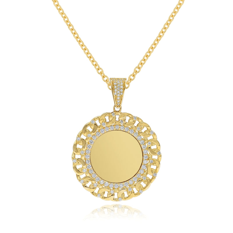 2.67 ct. Diamond 14K Yellow Gold Cuban Frame Medallion Memorial Picture Pendant