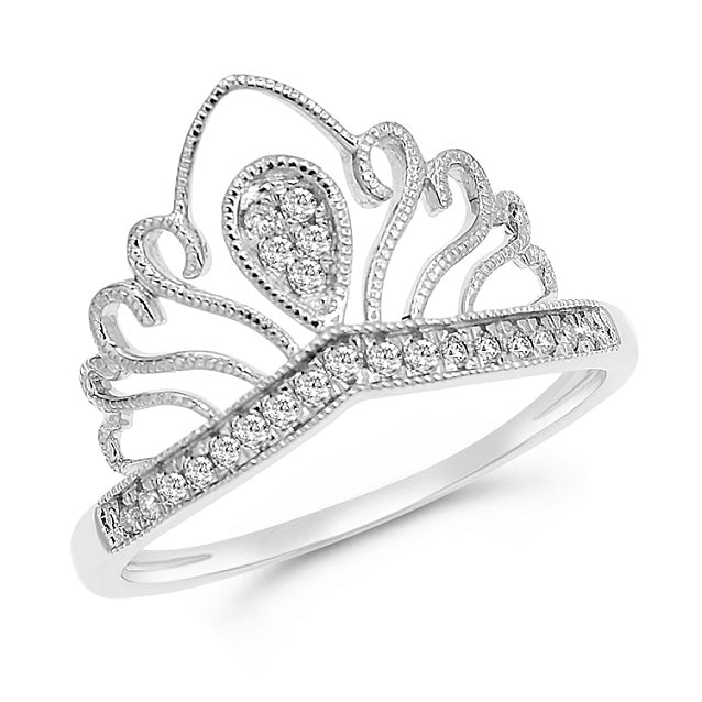 0.13 ct. Diamond 14K White Gold Princess Crown Ring