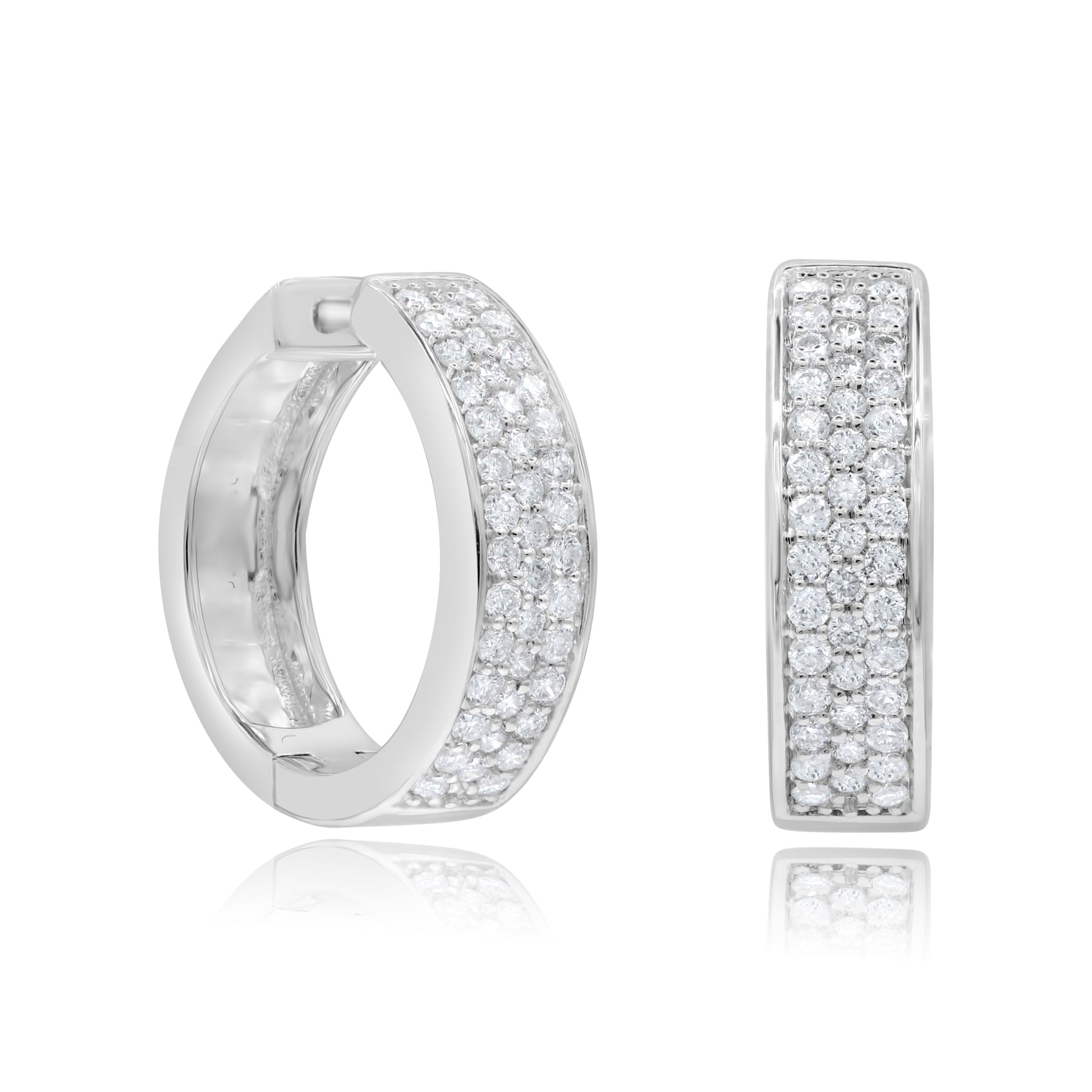 0.44 ct. Diamond 14K White Gold 3 Row Pave Hoop Earrings