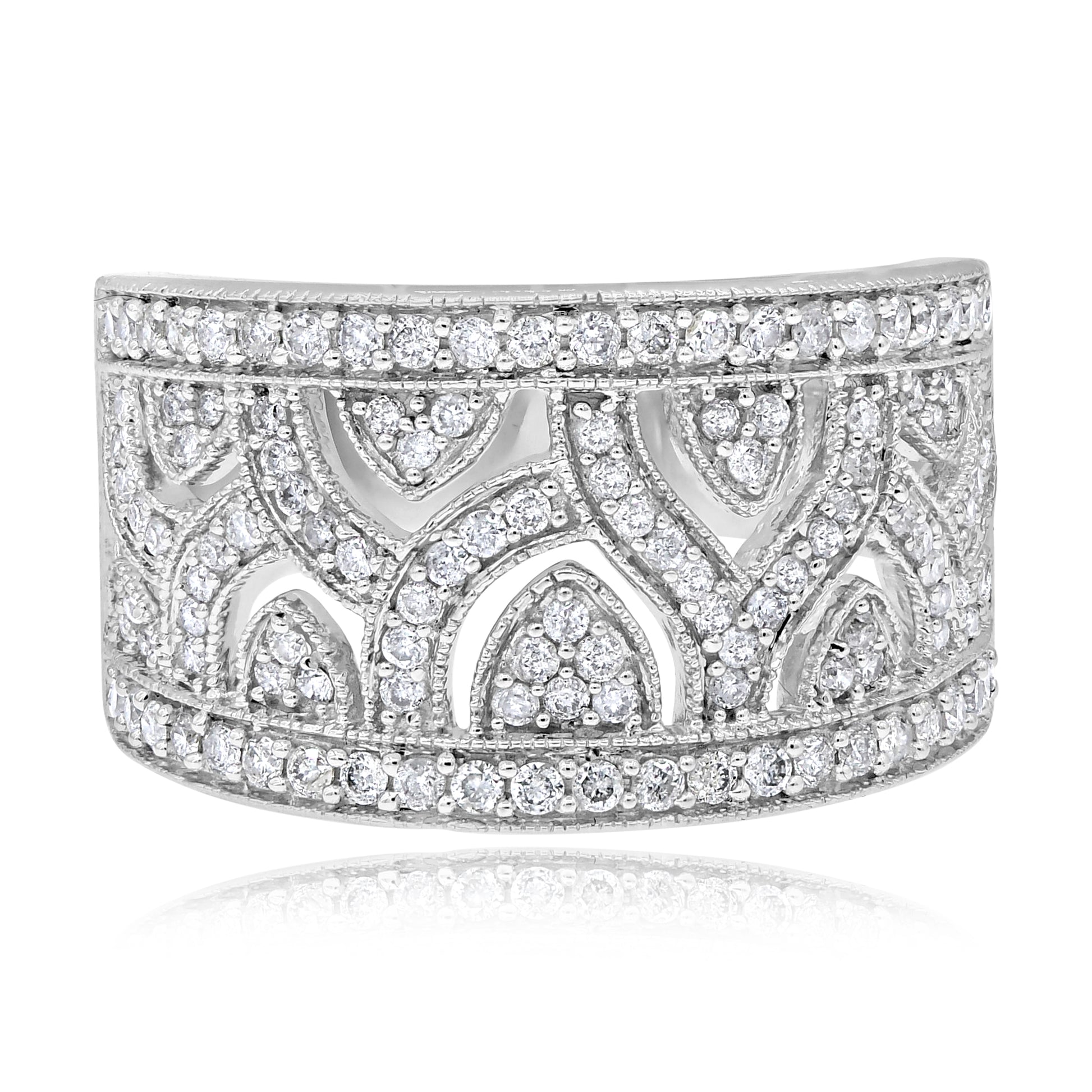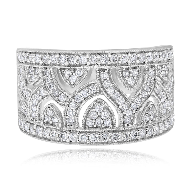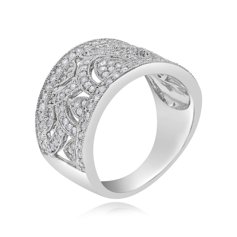 0.75 ct. Diamond 14K White Gold Openwork Wide Filigree Ring