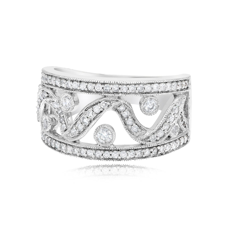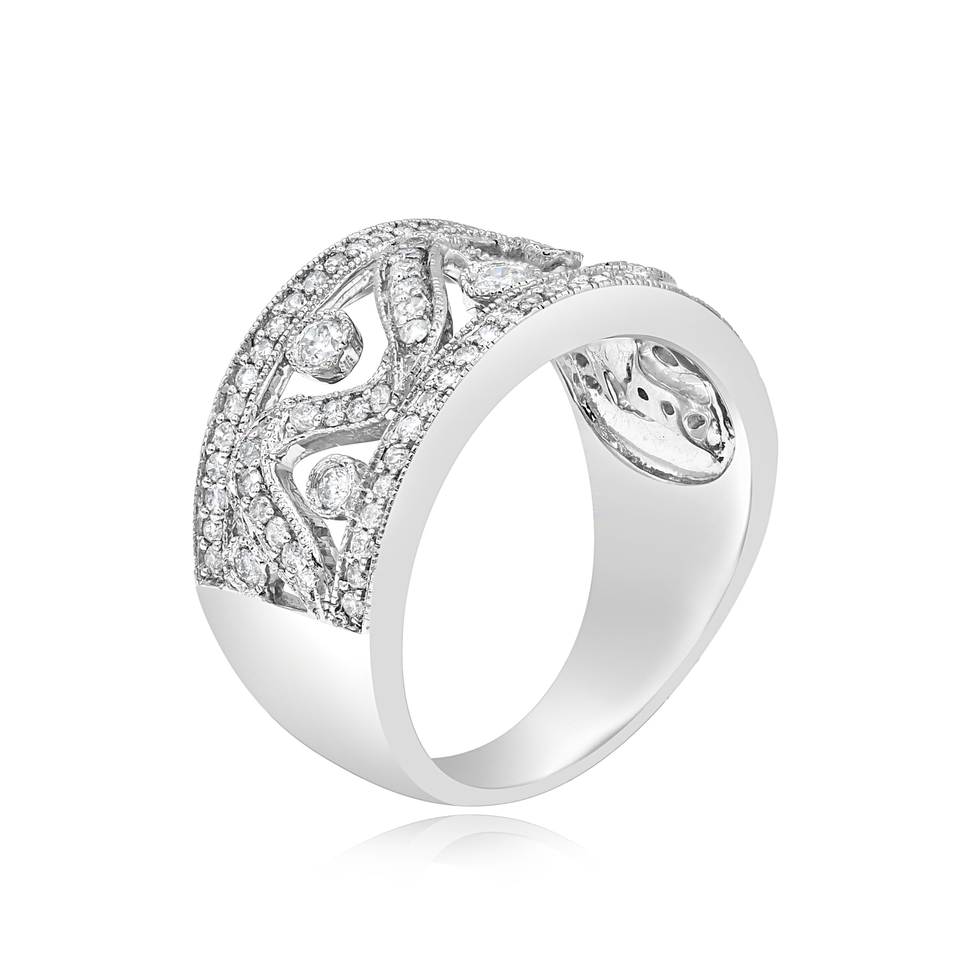0.68 ct. Diamond 14K White Gold Openwork Wide Filigree Ring