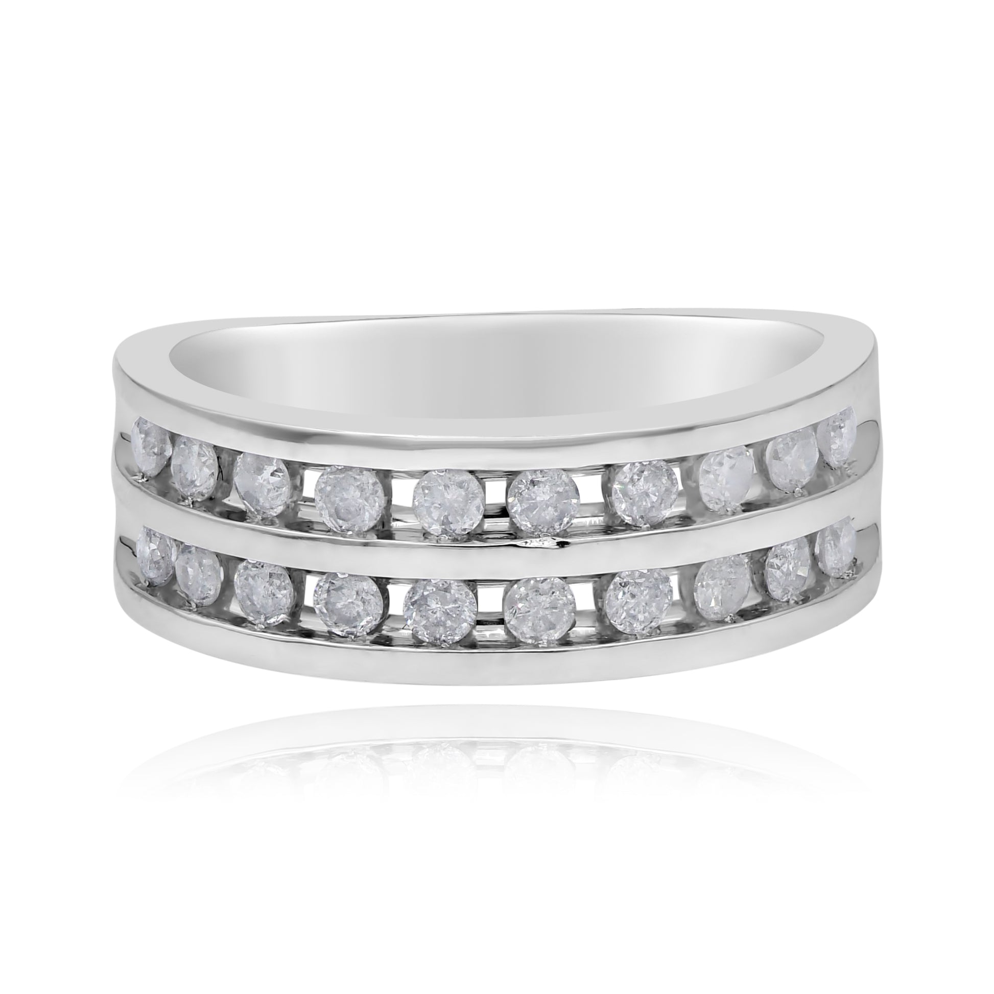 0.58 ct. Diamond 14K White Gold 2 Rows Half Eternity Band