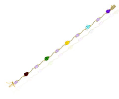5.82 ct. Amethyst, Citrine, Garnet, Peridot, Topaz & 0.25 ct. Diamond 14K Yellow Gold Link Bracelet
