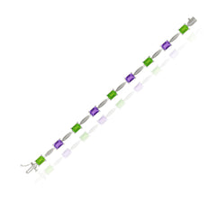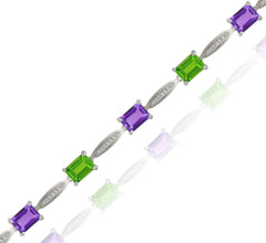 4.06 ct. Amethyst, 4.65 ct. Peridot & 0.23 ct. Diamond 14K White Gold Link Bracelet