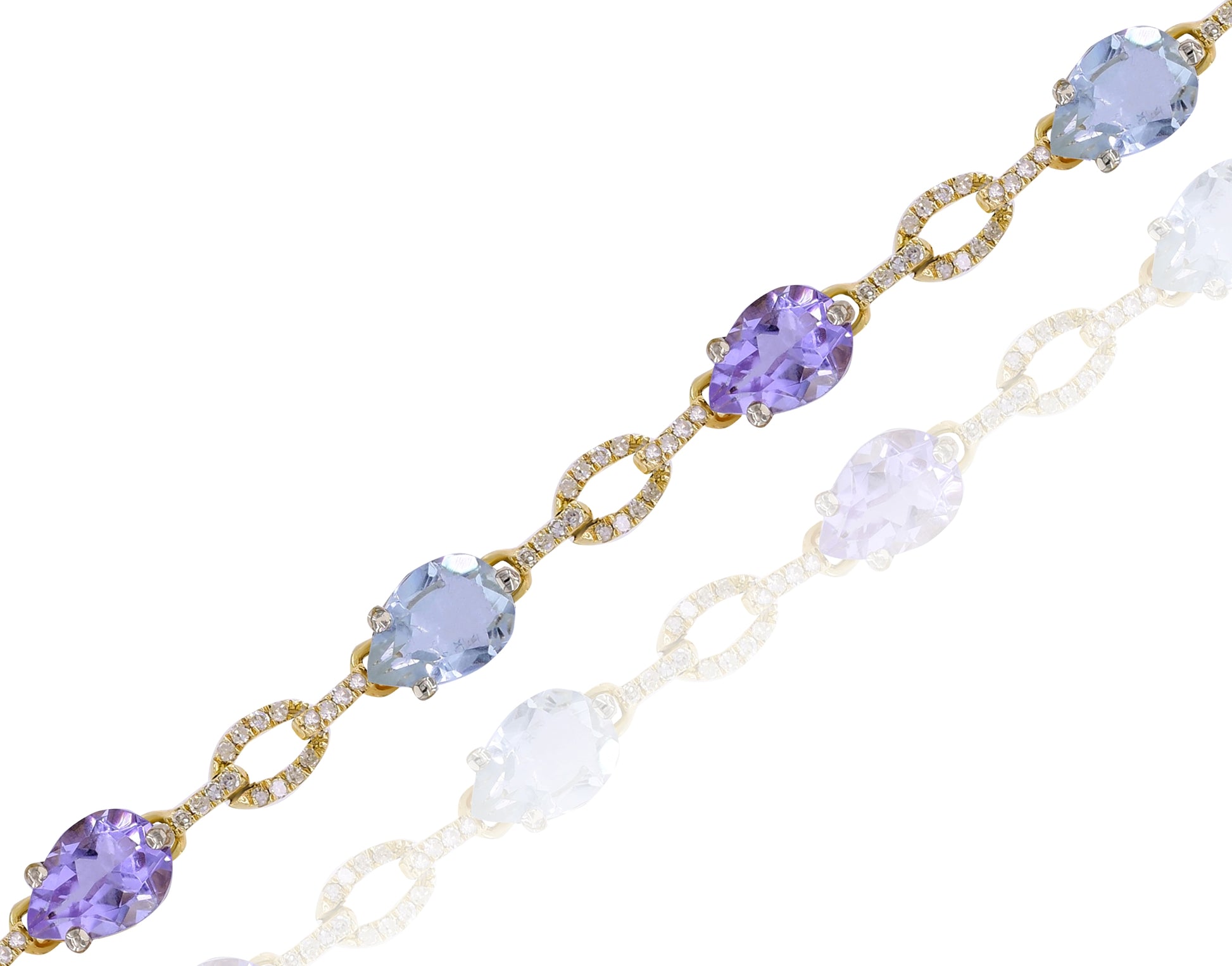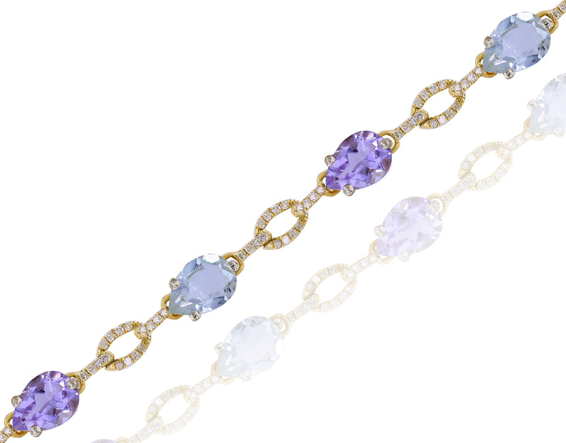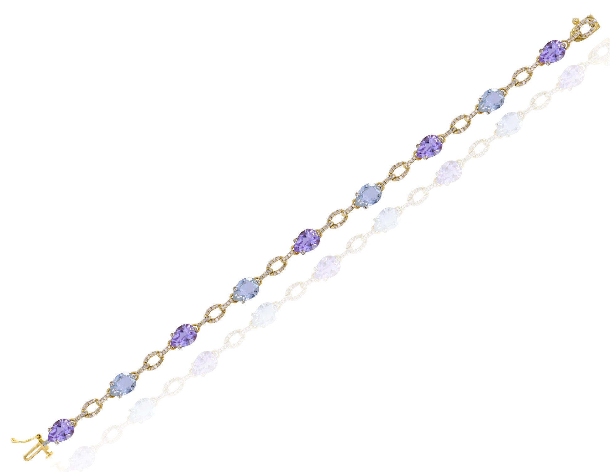 5.25 ct. Amethyst & 0.5 ct. Diamond 14K Yellow Gold Link Bracelet