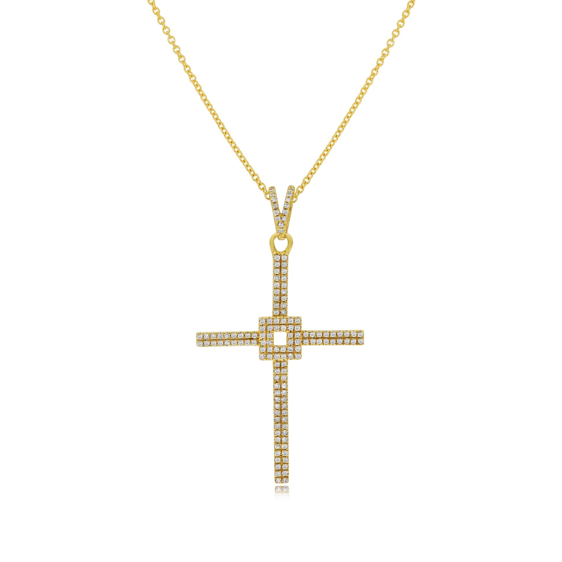 0.47 ct. Diamond 14K Yellow Gold Cross Pendant
