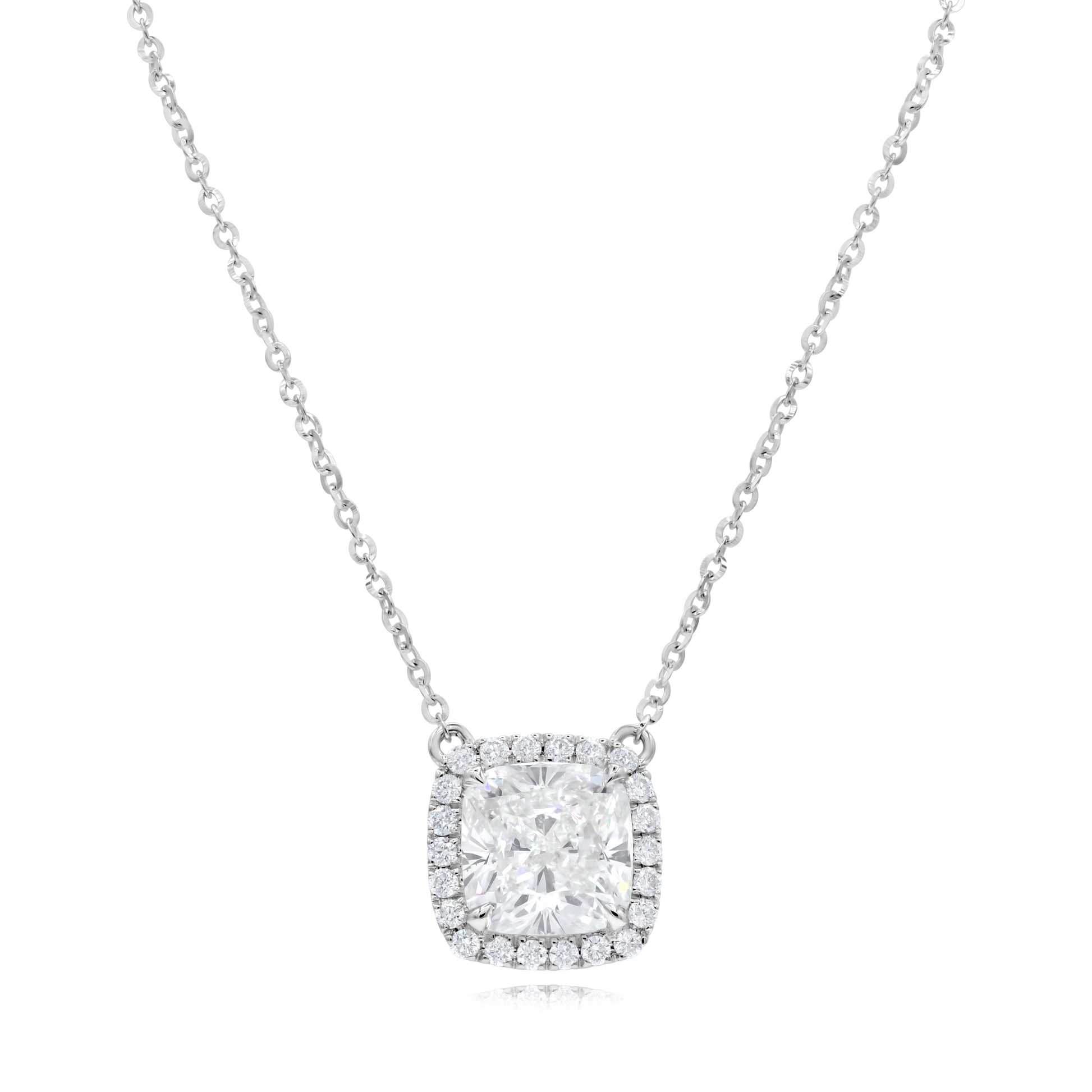 3.26 ct. Lab-Grown Diamond 14K White Gold Cushion Pendant Necklace