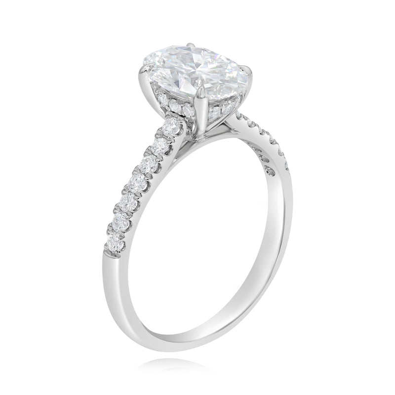 2.12 ct. Lab-Grown Diamond 14K White Gold Oval Classic Hidden Halo Pave Ring