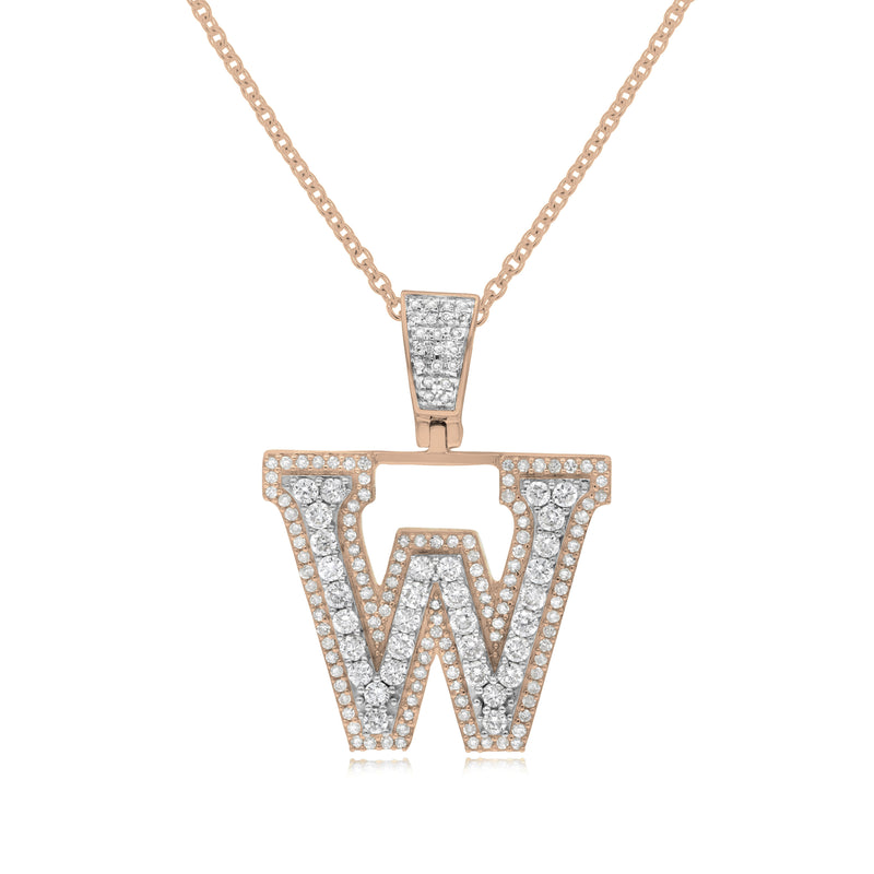 1.01 ct. Diamond 14K Two Tone Gold 'W' Initial Pendant