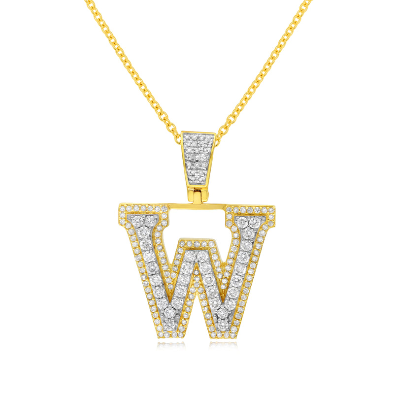 0.92 ct. Diamond 14K Two Tone Gold 'W' Initial' Pendant