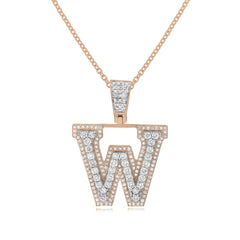 1.10 ct. Diamond 14K Two Tone Gold 'W' Initial Pendant