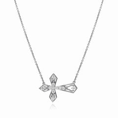 0.28 ct. Diamond 14K White Gold Sideway Flared Cross Pendant with 16" Chain
