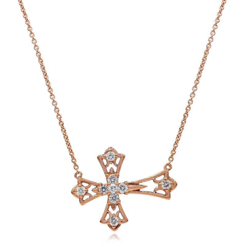 0.31 ct. Diamond 14K Rose Gold Sideway Flared Cross Pendant