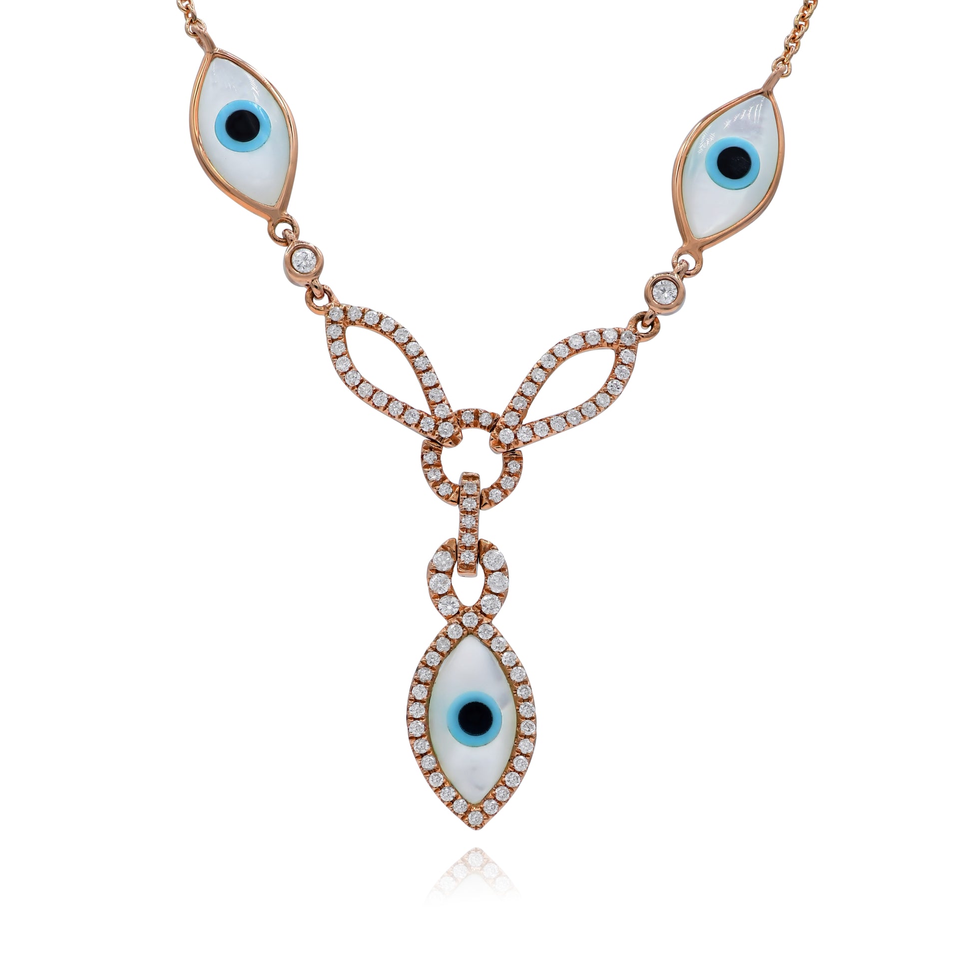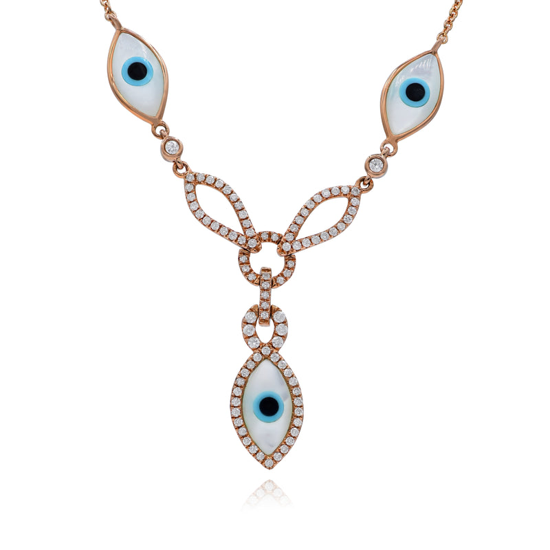 3.3 ct. Mother of Pearl & 0.31 ct. Diamond 14K Rose Gold Evil Eye Necklace