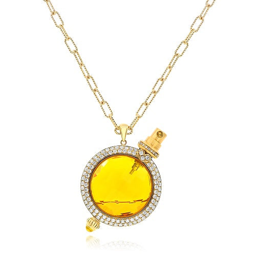 10 ct. Citrine & 1.12 ct. Diamond 18K Yellow Gold Perfume Spray Can Pendant