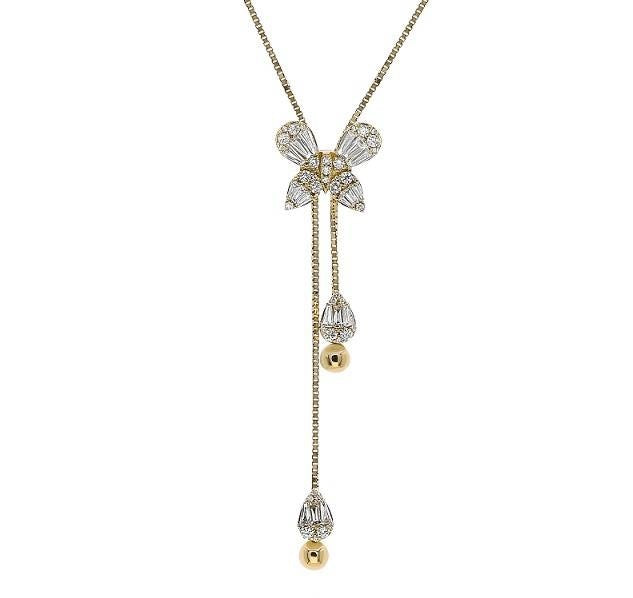 0.95 ct. Diamond 18K Yellow Gold Butterfly Lariat Necklace