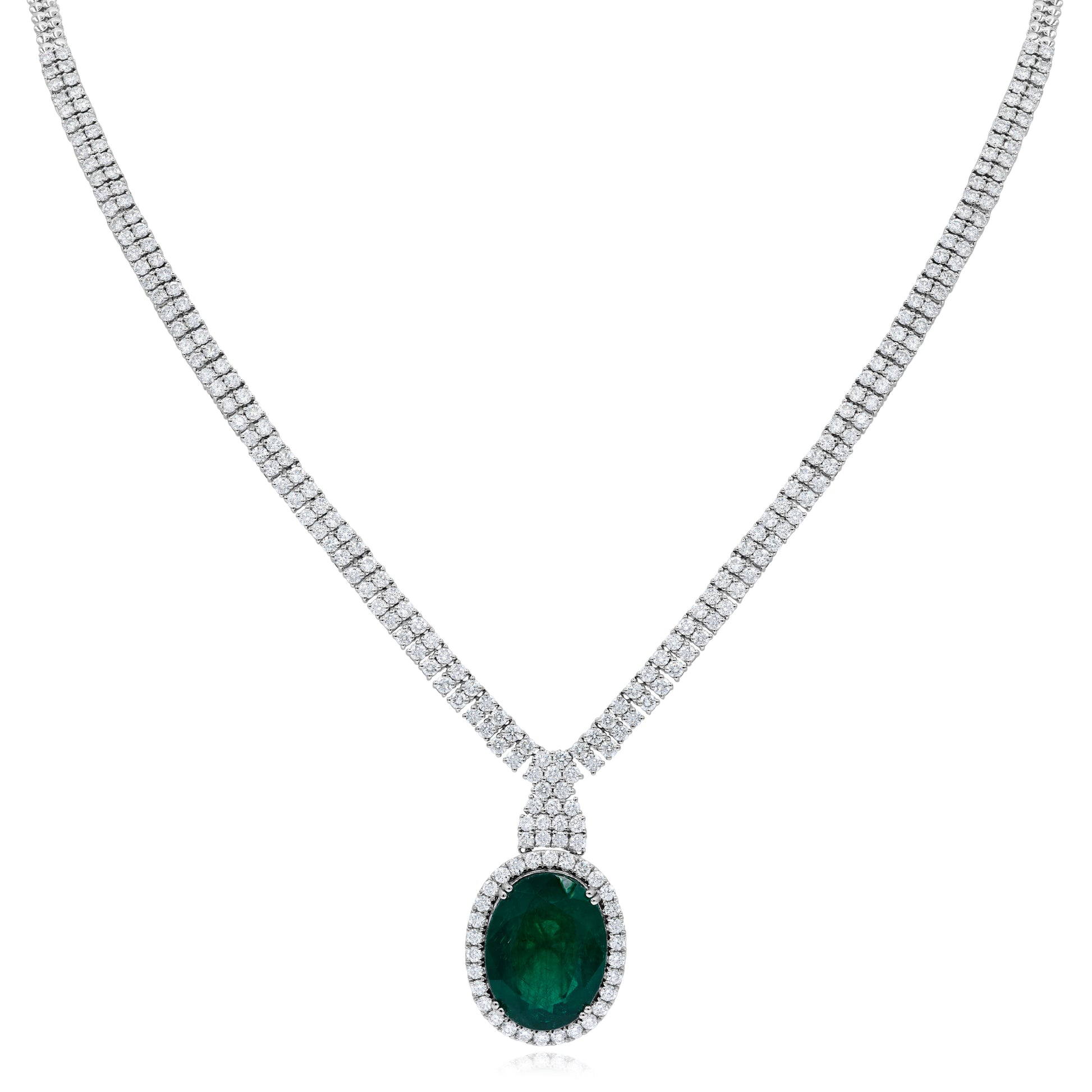 20.23 ct. Emerald & 9.57 ct. Diamond 18K White Gold Oval Halo Necklace