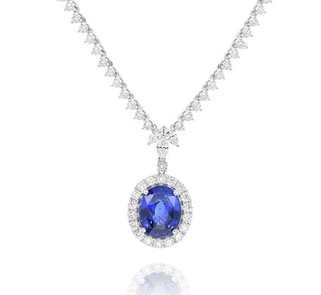 6.63 ct. Sapphire & 4.06 ct. Diamond 18K White Gold Pendant Necklace