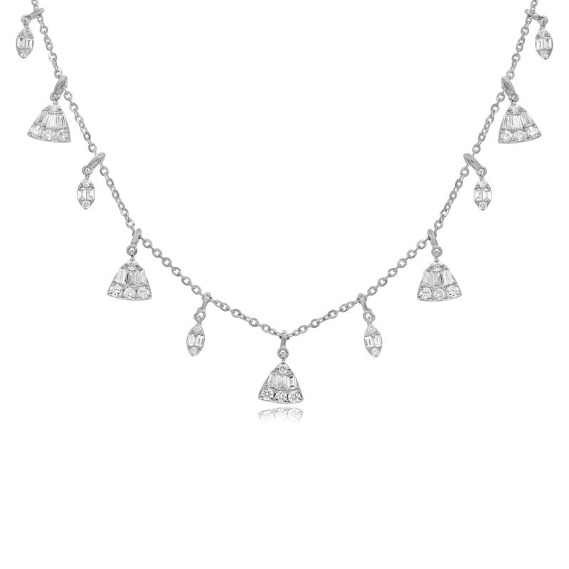 1 ct. Diamond 14K White Gold Triangle & Marquise Station Drop Choker Necklace 18"
