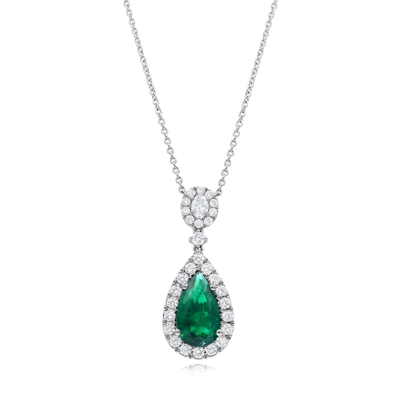 1.95 ct. Emerald & 0.75 ct. Diamond 18K White Gold Teardrop Pendant Necklace