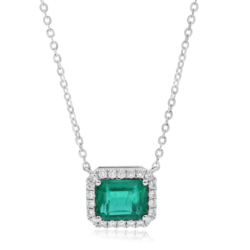 2.74 ct. Emerald & 0.28 ct. Diamond 18K White Gold Halo Pendant Necklace 18"