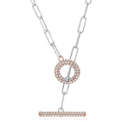 1.09 ct. Diamond 14K Two Tone Gold Toggle Paperclip Link Statement Necklace 16"