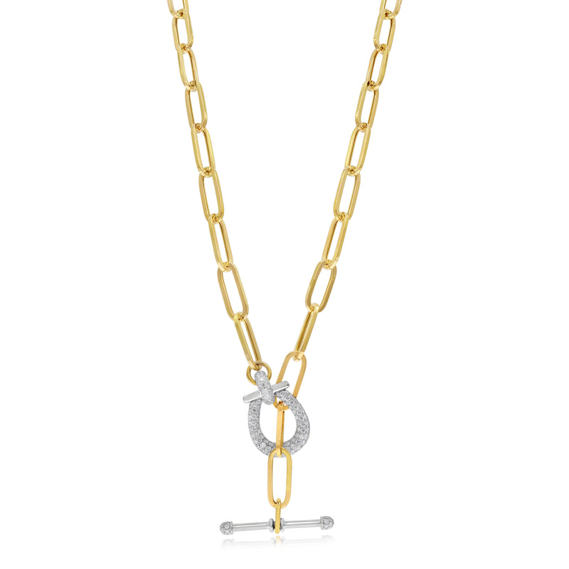 1.76 ct. Diamond 14K Two Tone Gold Toggle Paperclip Link Statement Necklace 17"