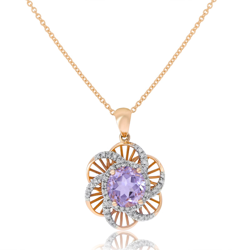 3.78 ct. Amethyst & 0.3 ct. Diamond 14K Rose Gold Medalion Pendant