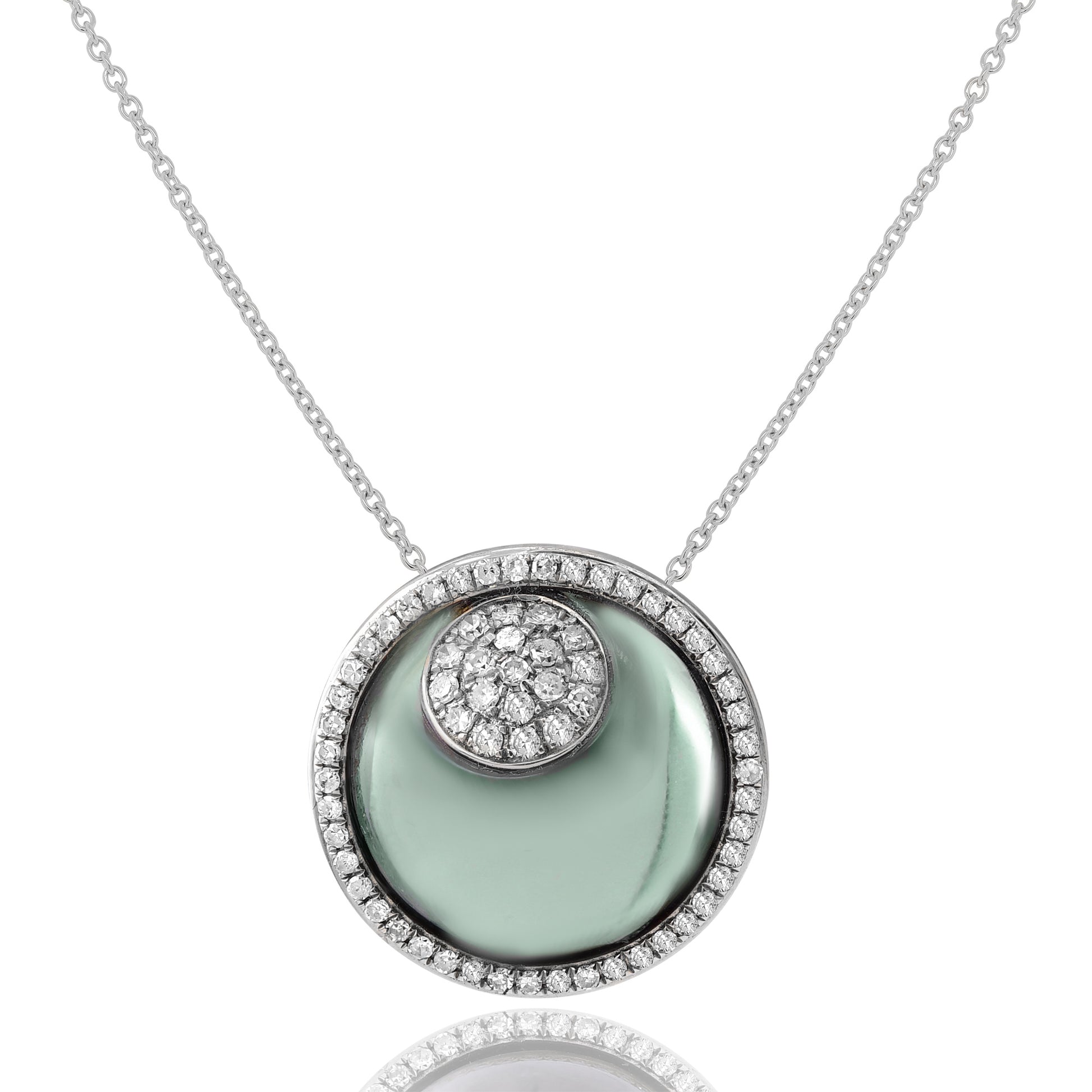 6.47 ct. Green Amethyst & 0.4 ct. Diamond 14K White Gold Pave Pendant