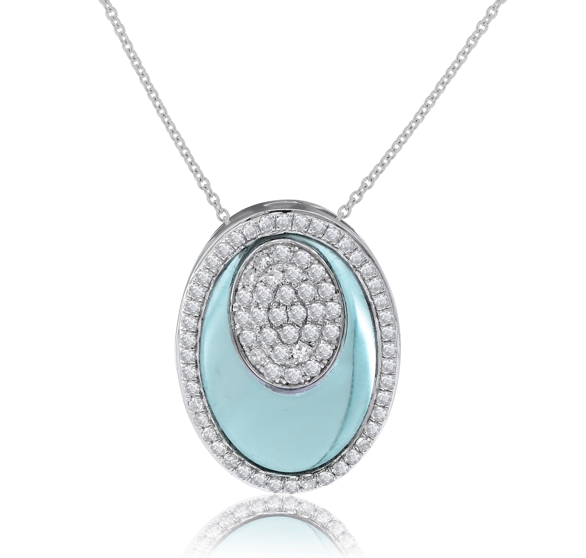 5.59 ct. Blue Topaz & 0.48 ct. Diamond 14K White Gold Pendant With 18" Chain