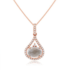 0.9 ct. Quartz & 0.18 ct. Diamond 14K Rose Gold Teardrop Pendant