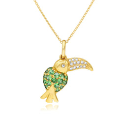 0.31 ct. Garnet & 0.05 ct. Diamond 14K Yellow Gold Toucan Pendant
