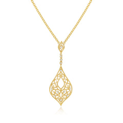 0.23 ct. Diamond 14K Yellow Gold Filgree Teardrop Pendant