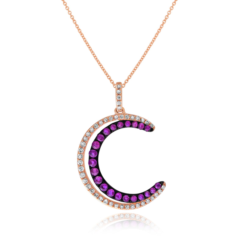 0.51 ct. Ruby & 0.2 ct. Diamond 14K Rose Gold Moon Pendant