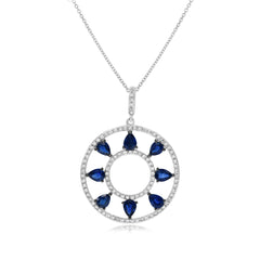 1.58 ct. Sapphire & 0.39 ct. Diamond 14K White Gold Pave Open Circle Pendant
