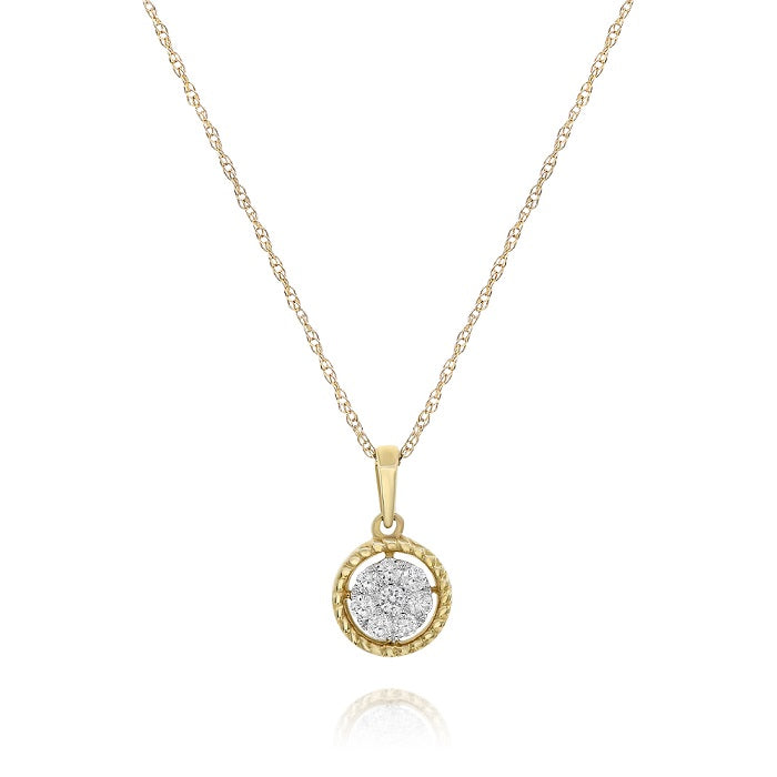 0.16 ct. Diamond 14K Yellow Gold Rope Halo Cluster Circle Pendant