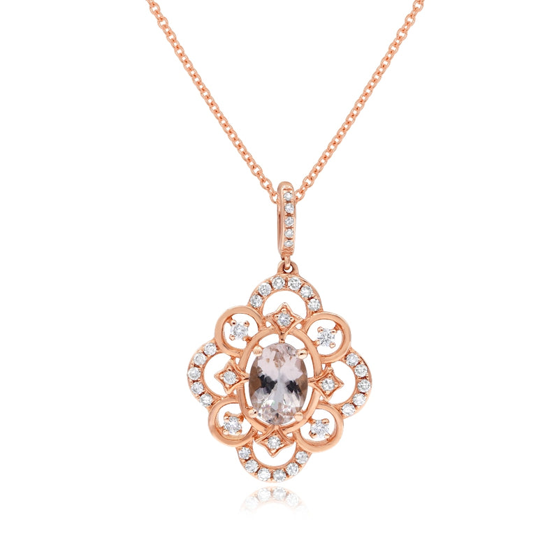0.7 ct. Morganite & 0.24 ct. Diamond 14K Rose Gold Halo Pendant